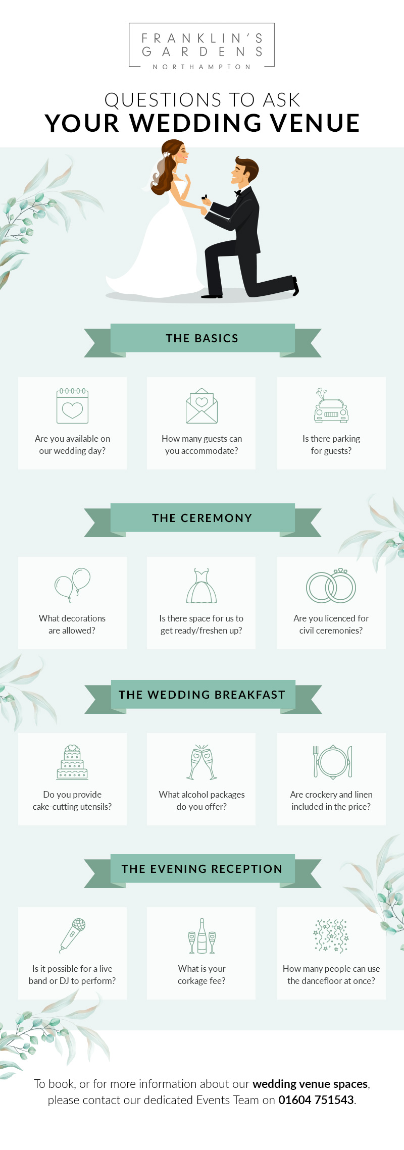 It’s easy to feel overwhelmed when trying to find your dream wedding venue. However, the process doesn’t have to be stressful, it should be fun and exciting. To help you make sure you know all the essential information, read our list of the key questions you should be asking your potential wedding venue.